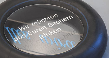 Die künstlerische Ausführung soll - bedingt durch die Höhe des inszenierten Wasserstrahls - die Wucht des Aufpralls darstellen und gleichzeitig mit einer ästhetischen Gestaltung den Blick des Betrachters auf sich ziehen.
